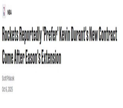 杜兰特是火箭队今年休赛期的核心引援,但目前他的合同已进入最后一年。不过所有迹象都表明,他将按照NBA“38岁以上规则”的规定,签下一份允许范围内最高2年1.22亿美元续约合同。这支球队与这位未来名人堂成员都希望在本赛季及之后的赛季冲击总冠军。