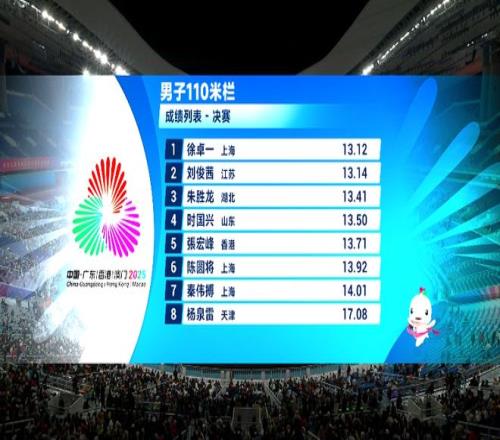 北京时间11月19日晚,田径项目迎来男子110米栏的决赛争夺。最终,来自上海的运动员徐卓一以13.12秒的成绩获得冠军,为上海队再添一金的同时捍卫了上海队自1993年七运会以来在该项目上对于金牌的垄断,实现全运会九连冠!陈圆将、秦伟搏分获第六和第七名。