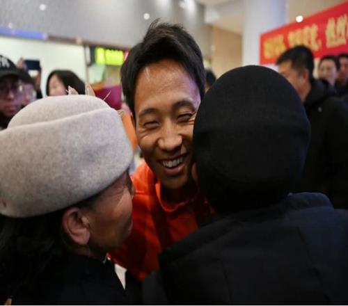 11月22日上午10时40分许,在银川河东机场,伴随着此起彼伏的欢呼声,何杰“受到了父老乡亲最热烈的欢迎”。