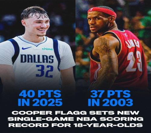 再过6天,弗拉格才会年满19岁。此前在NBA历史上,从未有不满19岁的球员砍下40+,不满19岁球员的最高分曾由詹姆斯保持,他拿到过37分。最年轻40+先生的头衔原本也由詹姆斯占据,他曾在19岁零88天的时候做到这一点。