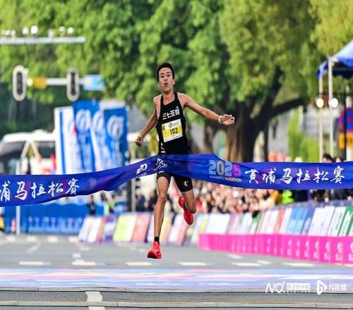 2025黄埔马拉松赛男子半程组冠军王佩林。