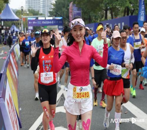 全运会顶流、十五运会吉祥物“喜洋洋”“乐融融”也现身赛场,与亲友团、志愿者一同为选手加油助威。为保障赛事顺利进行并优化体验,组委会组建了专业的官方配速员(“官兔”)团队,为选手提供精准指引。赛事全程践行绿色理念,采用新能源汽车作为工作车辆,并在检录口设置旧衣回收处,鼓励环保行为。