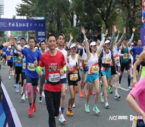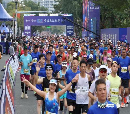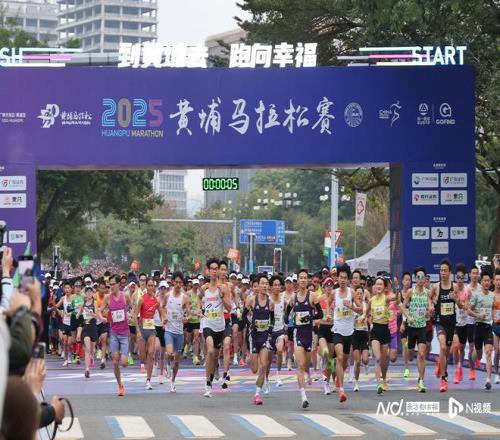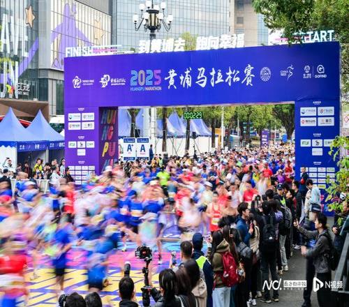 2025黄埔马拉松赛鸣枪开跑。