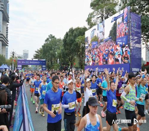 两万跑友陆续冲出起跑点。