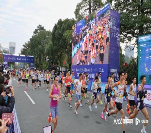 2025黄埔马拉松赛在科学城绿轴广场鸣枪开跑。