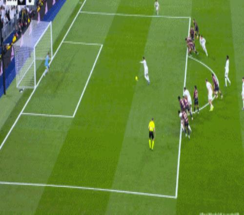 第14分钟,贝林厄姆送任意球,巴勃罗-马丁内斯主罚打门被挡